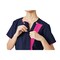 左前のラインがオシャレな女性用ジップスクラブ。グッドデザイン賞受賞のジップスクラブは、羽織って着られる前ファスナー仕様で、着脱時に髪が乱れたりメイクが崩れる心配もなく安心で快適です。 |