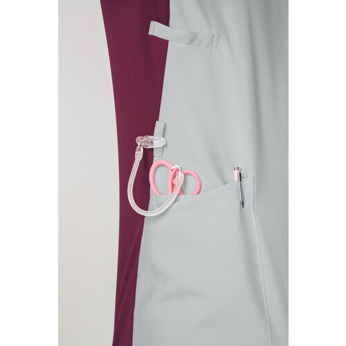 男女ペアで着られる背中・脇ニットのレディースジップスクラブ。動かすことが多い背中と脇部分にストレッチ性の高いニット素材を施すことで、動きやすくアクティブな職種の方にオススメです。 |