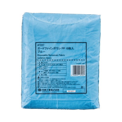ガードファインガウン PP ブルー フリーサイズ 1パック(10枚入) #7227B アイソレーションガウン