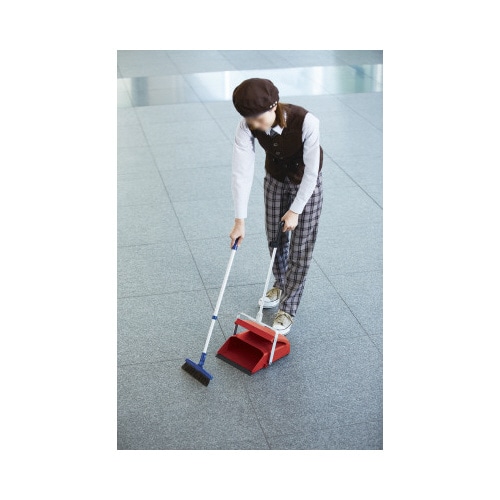 樹脂製で超軽量、移動清掃向き。柄が150度まで動き、隙間も楽に掃入れ可能。先端ゴムで塵まで逃さない。取っ手に滑止加工と箒をセットできるクリップ、底面に音を抑えるスポンジ付。エコマーク認定商品。 |