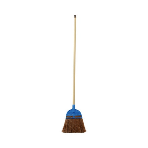 環境を配慮し天然素材を使わずにシダほうきのコシの強さに近づけた化繊ほうき。水にも強く、重量ゴミもしっかり掃き取る。パイプは木目調の樹脂被膜で木の質感を再現し、丈夫で掃きやすい。 |