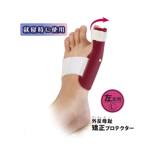 外反母趾や捻挫によって変形した足の親指に本品をベルトで固定し、足の親指関節の変形を矯正します。寝ている間にじっくり外反母趾を矯正し、正常な位置に導きます。 |