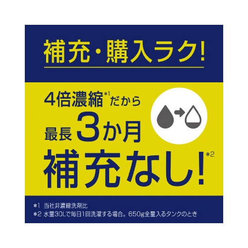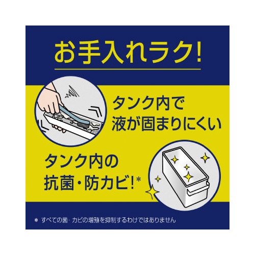 4倍濃縮で最長3か月補充なしだから補充・購入ラクに。投入タンク内の防カビ、抗菌でお手入れもラクに。 |