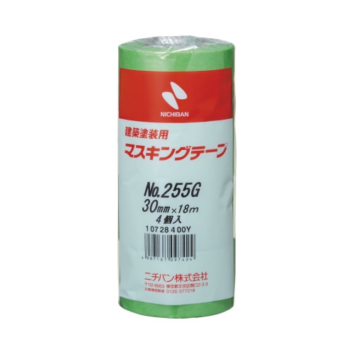 マスキングテープ 黄緑 30mm 40巻 幅30mm×長さ18m 1箱(1包4巻入×10) 255G−30 マスキングテープ(作業用)