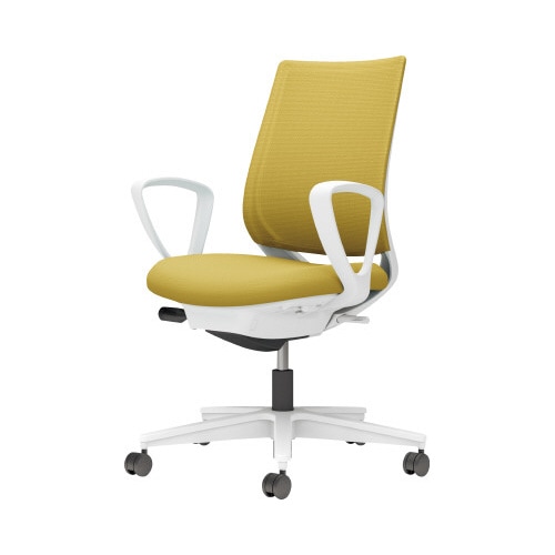 オフィスチェア Mitra2 スタンダードバック 本体ホワイトグレー オフィスチェア メッシュタイプ 肘置きあり オリーブイエロー 脚(脚羽根)強化ナイロン 1脚 C04−W150MW−E11S1S1