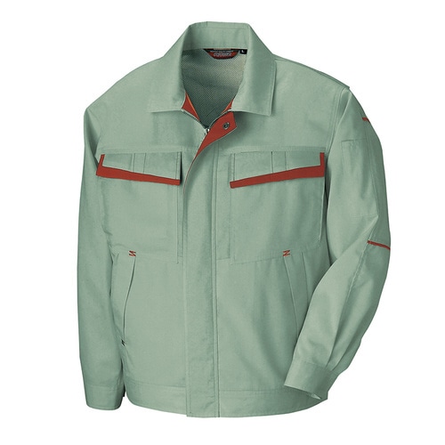 長袖夏ブルゾン(配色) Eグリーン×Wレッド 5L
