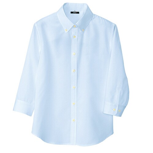 アイトス AZ−8057 レディース七分袖ボタンダウンシャツ サックス S 7300-1584