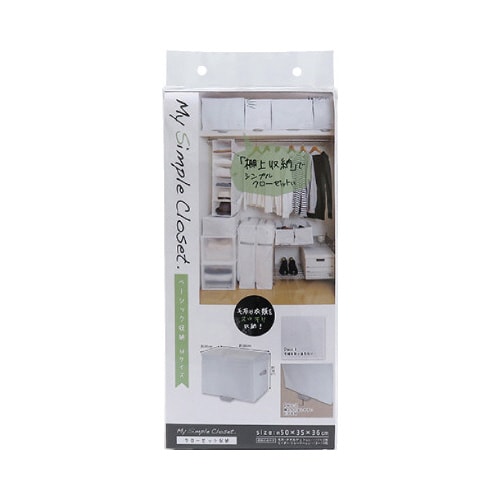 クローゼットの棚上にすっきり隙間収納できる収納袋です。セーターやトレーナなら12枚から16枚、毛布やタオルケットなら1枚から3枚が収納の目安です。防虫剤等が入れられるポケットが2ヶ所付。 |