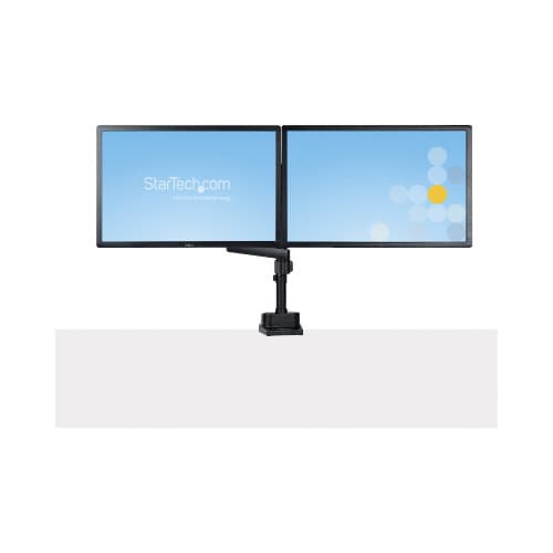 最大2台の32インチLCDまたはLEDモニターをデスクに取り付けて使用。アーム引き出し、上下振り、回転、個別のスプリングアシストによる高さ調節が可能 |