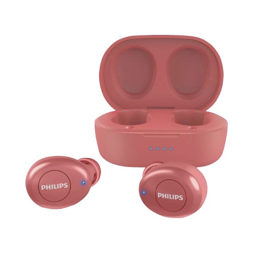 スリムなデザインのチャージングケースがセットになったワイヤレスイヤホンレッド |