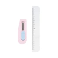 ちいさい、かわいい、べたつかない。フッ素コートでサビに強く、テープを切ってもべたつきません。大型と同じ0.5mm厚刃を採用し、丈夫で折れにくく、切れ味が長く続きます。小回りの利く10cm定規セット。 |