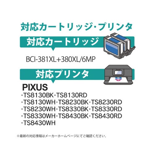 CANON BCI−381XL+380XL/6MP対応 リサイクル インクカートリッジ 大容量 6色パック 残量表示機能付