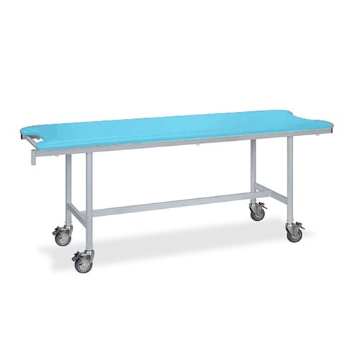 寸法:幅65×長さ190×高さ85cm | 仕様:点滴棒(別売)装着可能 | フレーム:アルミメタリックシルバー塗装仕上げ | マット:耐次亜塩素酸、…