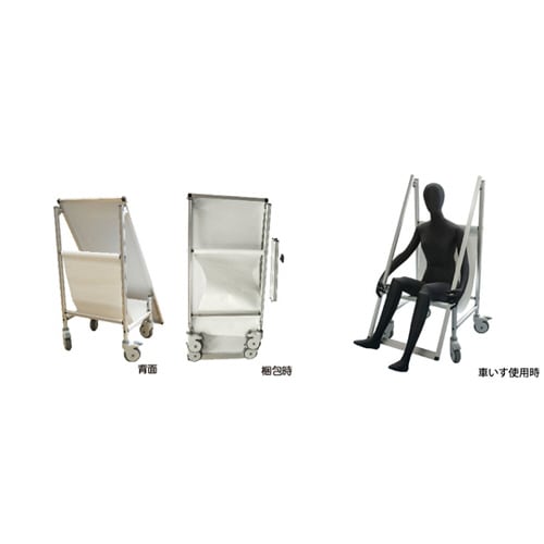 普段は注意看板として使用でき、怪我人が出た際は車いすとしても使用できる救護器具兼用の注意看板 |