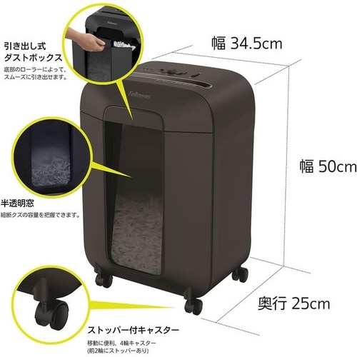 省スペース設計でデスク下のデッドスペースを有効活用できます。小さいながらもパワフルな細断能力で、カード類やクリップ・ホチキス留めの書類も細断可能です。 |