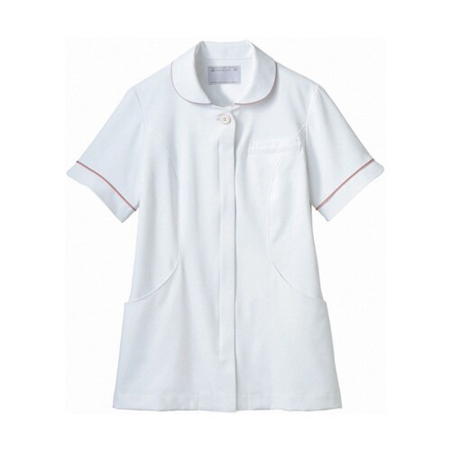 ナースジャケット 半袖 白/ラベンダー&ピンク M 73−2002 M ウエア・シューズ・グッズ ナースウエア 1枚