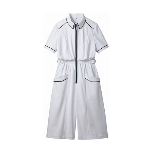 オールインワン レディス 半袖 ホワイト L OM313−10 L ウエア・シューズ・グッズ ナースウエア 1枚