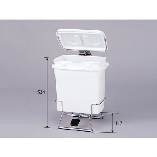 ペダルを踏むことで手を触れずに蓋を開閉できます。場所を取らないコンパクトタイプです。 |