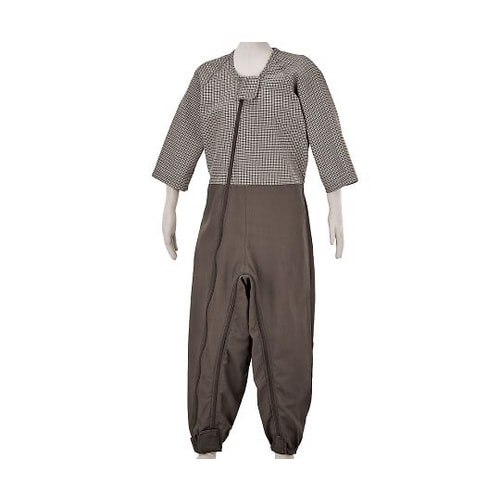 ロック機能付きファスナーとホックカバーで本人の開閉を防止します。首元から足元までのオープンファスナーで着脱が容易にできます。スライダーが破損した時に、容易に交換することができます。 |