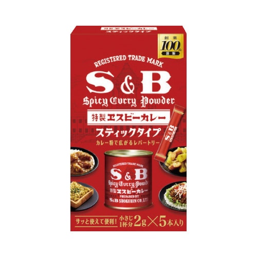 「赤缶」の呼び名で親しまれてきたカレー粉のスティックタイプ。1本あたり小さじ1杯分(2g)。30数種類のスパイス&ハーブを絶妙なバランスで調合し、こだわりの製法で仕上げています。 |