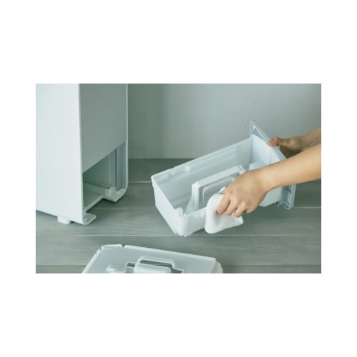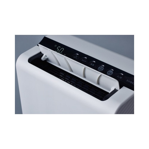 1日の除湿量は7.6L。広い部屋もパワフルに除湿。パワフル除湿で衣類乾燥もスピーディ。気温が低くてもしっかり除湿。冬の結露対策にもひと役買います。どんな空間にもなじむスタイリッシュなたたずまい。 |