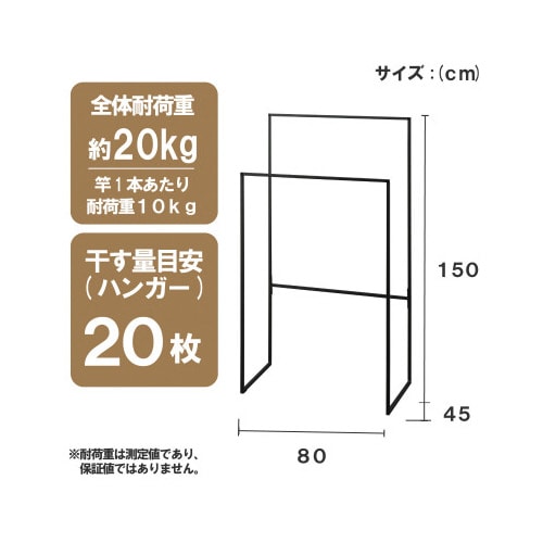 寸法:約幅800×奥行450×高さ1500mm | 質量:3.55kg | 材質:パイプ・ハンガーパイプ:スチール(エポキシ樹脂塗装)、プラスチックパ…