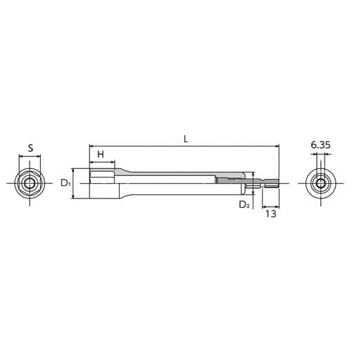 差込角6.35mm(1/4”)インパクト用ロングソケット六角ビット 難攻不落 21mm BZP63L−21 1個