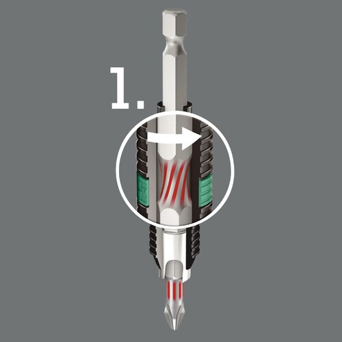 バイトーションゾーン、破断時にも危険を大きく減らし使用寿命を大幅に伸ばします”Takeiteasy”色分けシステム:形状によって色分けされていますポジドライブネジ用 |