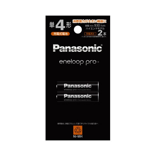 充電池 エネループ プロハイエンドモデル 単4 BK−4HCD/2H 大容量モデル 最小容量930mAh/くり返し回数150回 単4形 充電池/充電器 1パック(2本入)