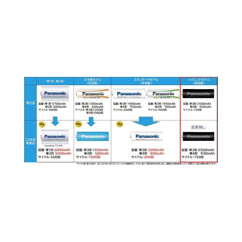 高容量で、長時間機器を使いたい方に最適。容量:min.930mAh(※JIS C8708 2019(7.3.2)の充放電条件に基づく電池の最小(min.)容量※)低温特性にすぐれ、自然放電が少ない。 |