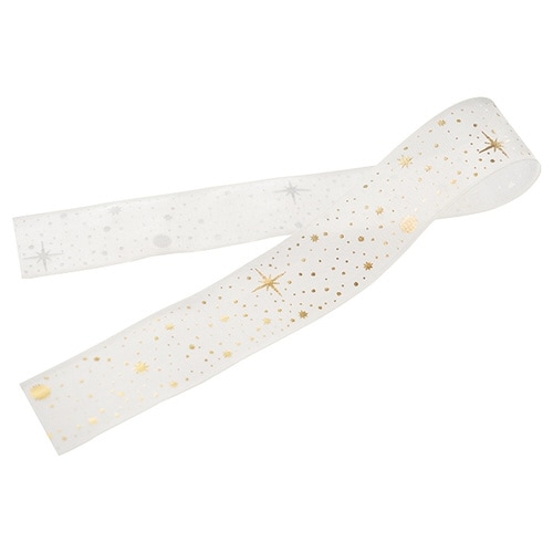星空のようなキラキラのデザインが華やかな白のオーガンジーリボンです。ギフトボックスや貼箱などを豪華に演出します。 |