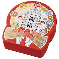 縁起の良い七色のだるまが描かれた福箱用の貼箱です。店頭に置くだけでディスプレイとしても目をひきます。裏にメッセージが入った七色のだるまのピックがついています。 |
