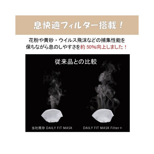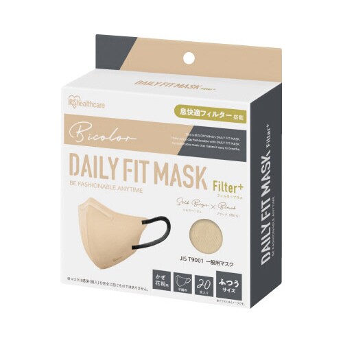 息がしやすい立体マスク ふつうサイズ 20枚入 シルクベージュ×ブラック RN−H20SUE 立体マスク DAILYFITMASKFilter+(フィルタープラス) 1箱(20枚入)