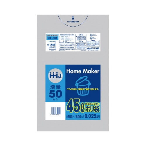 ハウスホールド ポリ袋 45L 透明 KL58 ゴミ袋(低密度ポリエチレン) 1箱(50枚×15) 7374-0469