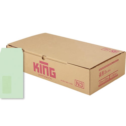 キングコーポレーション 封筒長3グラシン窓48Pソフト緑無1000枚 120148 封筒(窓付き) 1箱(1,000枚) 7374-3446