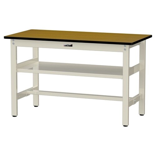 軽量作業台/耐荷重300kg 中間全面棚板 固定式 ポリエステル天板 ワークテーブル300シリーズ 幅1200×奥行600×高さ740mm SWP−1260S2−MI 天板木目柄×脚アイボリー 1台