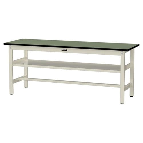 軽量作業台/耐荷重300kg 中間全面棚板 固定式 塩ビシート天板 ワークテーブル300シリーズ 幅1800×奥行600×高さ740mm SWR−1860S2−GI 天板グリーン×脚アイボリー 1台