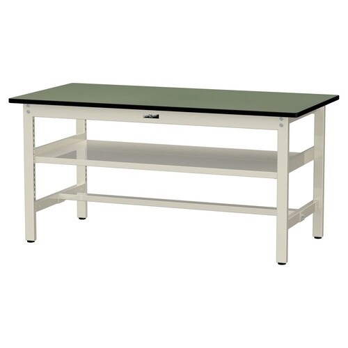 軽量作業台/耐荷重300kg 中間全面棚板 固定式 塩ビシート天板 ワークテーブル300シリーズ 幅1500×奥行750×高さ740mm SWR−1575S2−GI 天板グリーン×脚アイボリー 1台