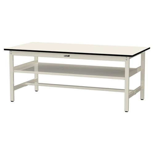 軽量作業台/耐荷重300kg 中間全面棚板 固定式 塩ビシート天板 ワークテーブル300シリーズ 幅1800×奥行900×高さ740mm SWR−1890S2−II アイボリー 1台