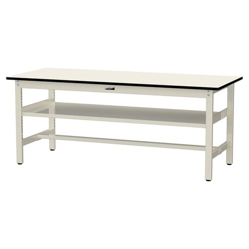 軽量作業台/耐荷重300kg 中間全面棚板 固定式 塩ビシート天板 ワークテーブル300シリーズ 幅1800×奥行750×高さ740mm SWR−1875S2−II アイボリー 1台