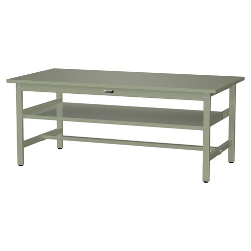 軽量作業台/耐荷重300kg 中間全面棚板 固定式 スチール天板 ワークテーブル300シリーズ 幅1800×奥行900×高さ740mm SWS−1890S2−GG グリーン 1台