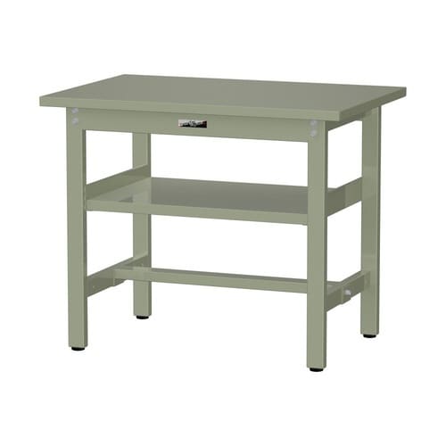 軽量作業台/耐荷重300kg 中間全面棚板 固定式 スチール天板 ワークテーブル300シリーズ 幅900×奥行600×高さ740mm SWS−960S2−GG グリーン 1台