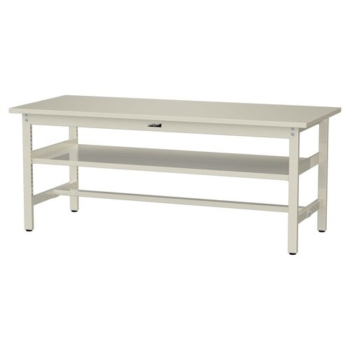 軽量作業台/耐荷重300kg 中間全面棚板 固定式 スチール天板 ワークテーブル300シリーズ 幅1800×奥行750×高さ740mm SWS−1875S2−II アイボリー 1台
