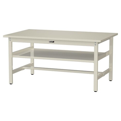 軽量作業台/耐荷重300kg 中間全面棚板 固定式 スチール天板 ワークテーブル300シリーズ 幅1500×奥行900×高さ740mm SWS−1590S2−II アイボリー 1台
