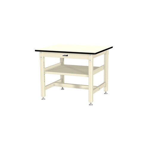 中量作業台/耐荷重800kg 中間全面棚板 固定式 メラミン天板 ワークテーブル800シリーズ 幅900×奥行750×高さ740mm SVM−975S2−II アイボリー 1台