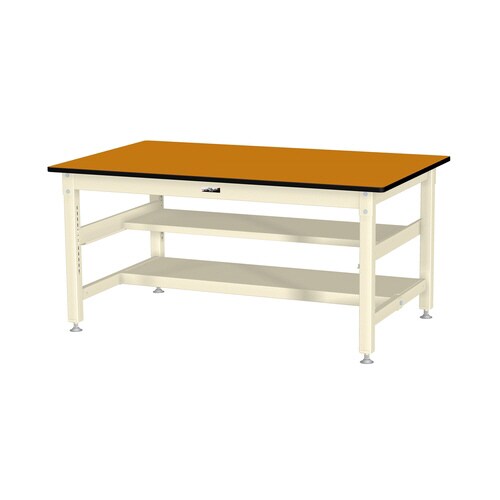 中量作業台/耐荷重800kg 中間+足元半面棚板 メラミン天板 ワークテーブル800シリーズ 幅1500×奥行900×高さ740mm SVM−1590TS1−MI 天板木目柄×脚アイボリー 1台
