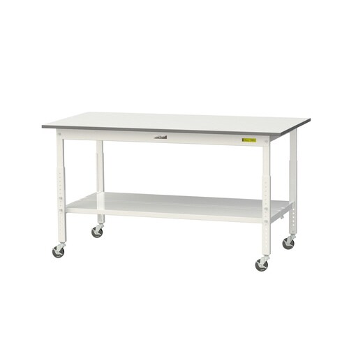 軽量作業台/耐荷重128kg 高さ調整移動式 全面棚板 ワークテーブル150シリーズ 幅1500×奥行750×高さ685から985mm SUPAC−1575TT−WW ホワイト 1台