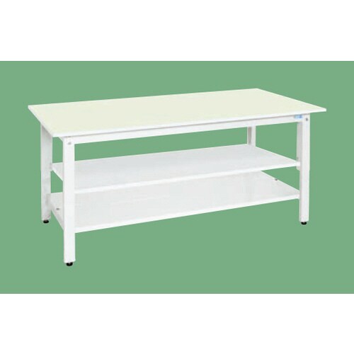 軽量作業台 KHタイプ 耐荷重350kg 抗菌・抗ウイルスポリエステル天板 幅1800奥行750高さ800mm 固定式 中棚・中板付 1台 KH−69VPGT2(お客様組立て)