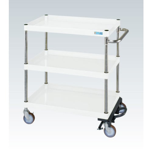 CSパールワゴン中量タイプ 耐荷重150kg ナイロンウレタン車 パールホワイト 幅1200奥行600高1200mm3段移動式フットブレーキ付 1台 CSP−12123BRNUW(お客様組立て)