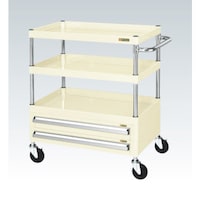 CSパールワゴン中量タイプ 耐荷重120kg ゴム車 アイボリー 幅600奥行400高さ880mm 3段 移動式 引出付 1台 CSP−6083A2I(お客様組立て)
